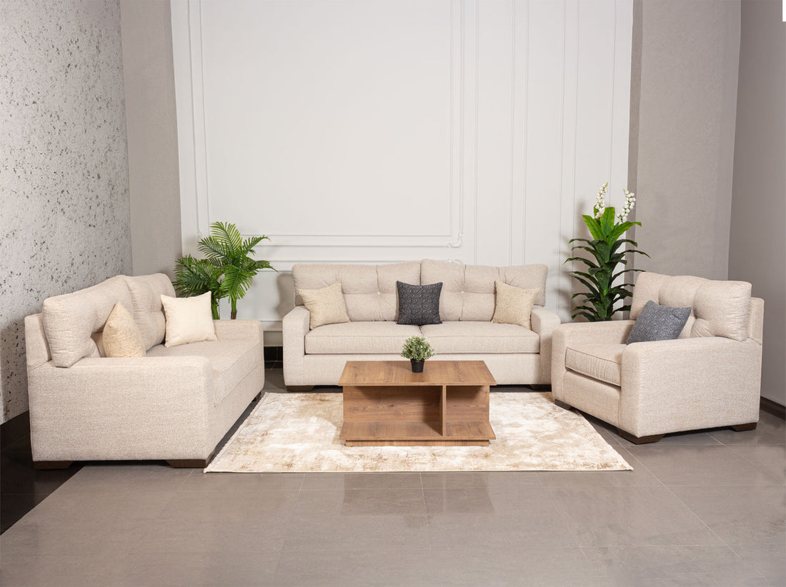 يتكون من كنبة ثلاثية - كنبة ثنائية - فوتيه الخامة مصنوع من خشب زان طبيعي ذو متانة عالية...