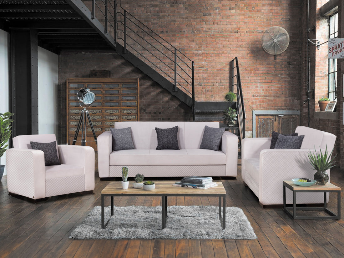 Consists of 3 seater -2 seater -Chair Materials A soft fabric with a slight sheen,...