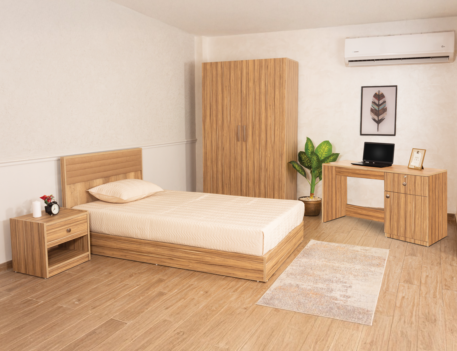 (Bed - Hinged Wardrobe - 1 Commode -Desk)