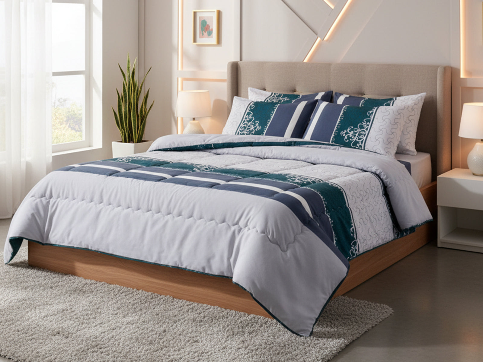 دبل : 235*235 ، تتكون من 3 قطع (لحاف + 2 كيس خدادية)