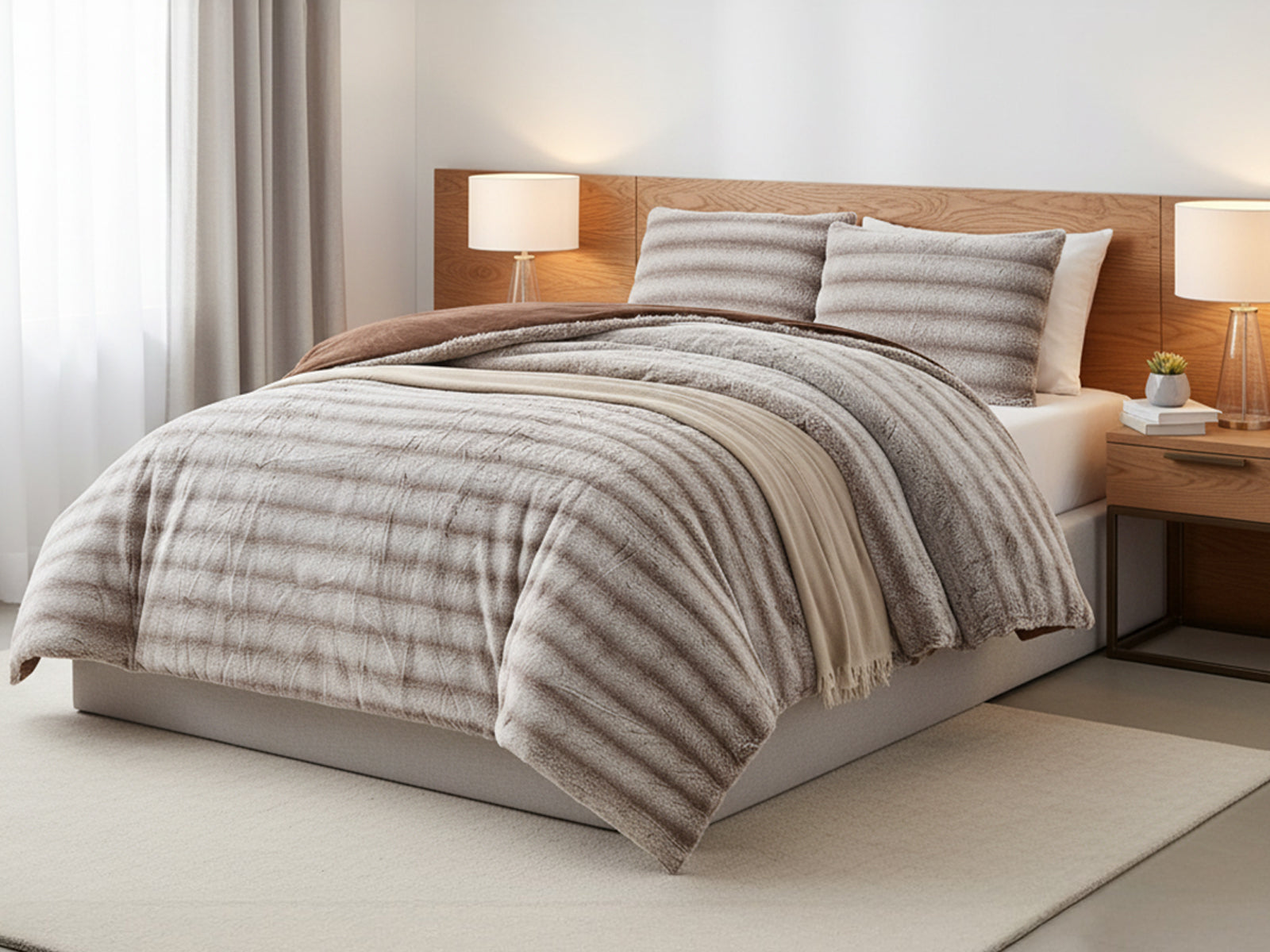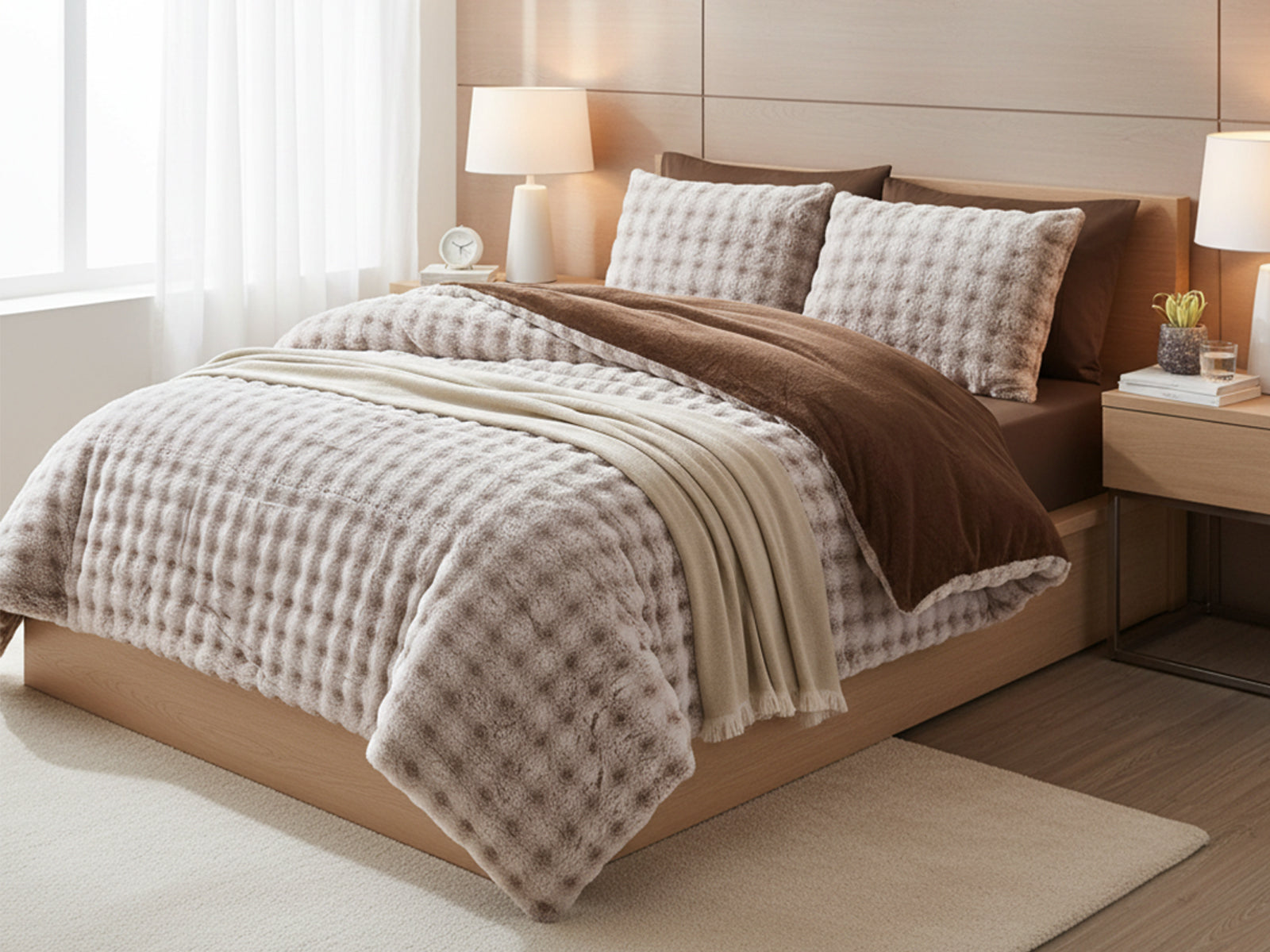 - لحاف فرو مجوز 3 ق الطول : 235 سم العرض : 235 سم (لحاف فرو+ 2 كيس خدديه)
